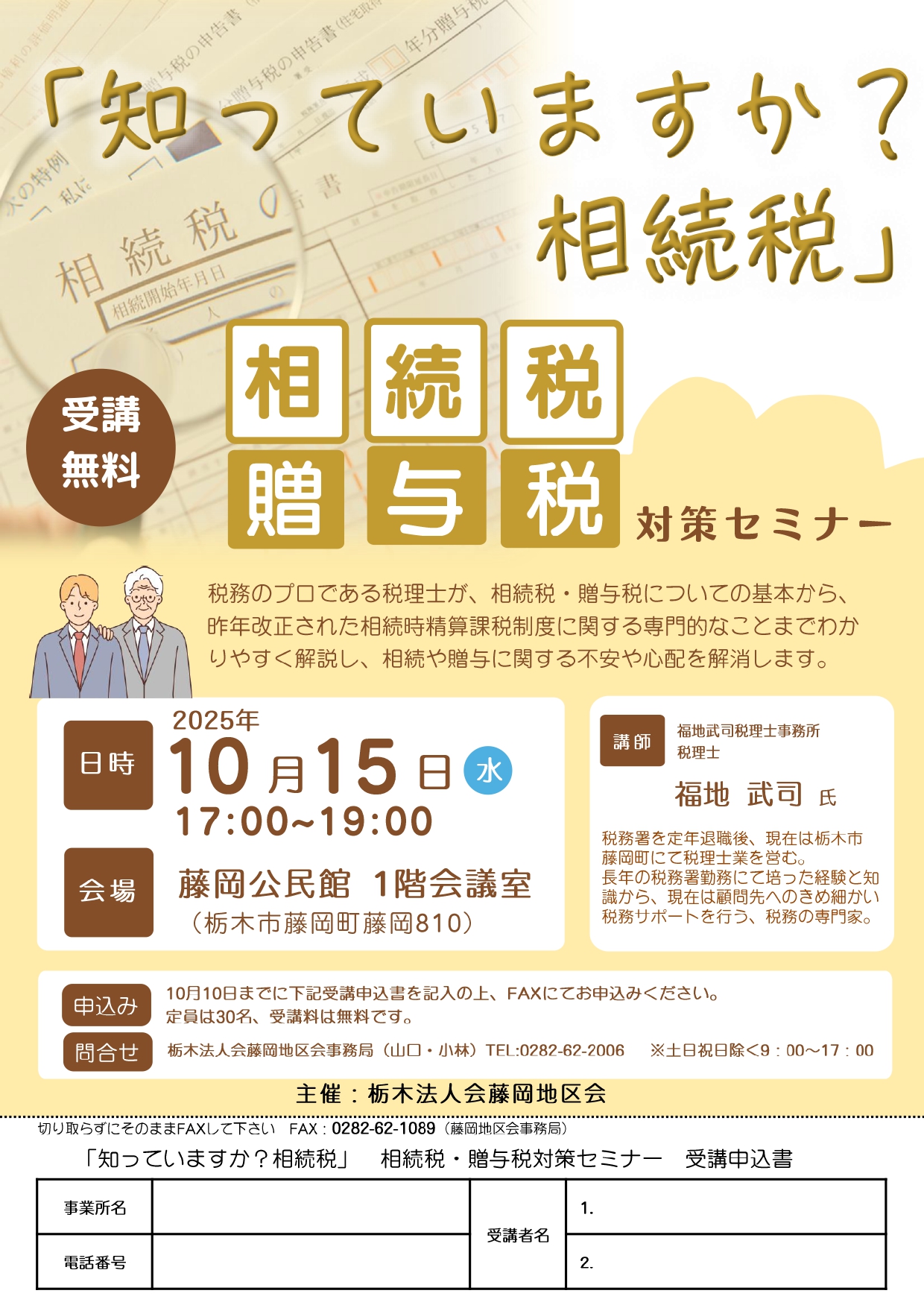 相続税・贈与税対策セミナーの開催藤岡町商工会。