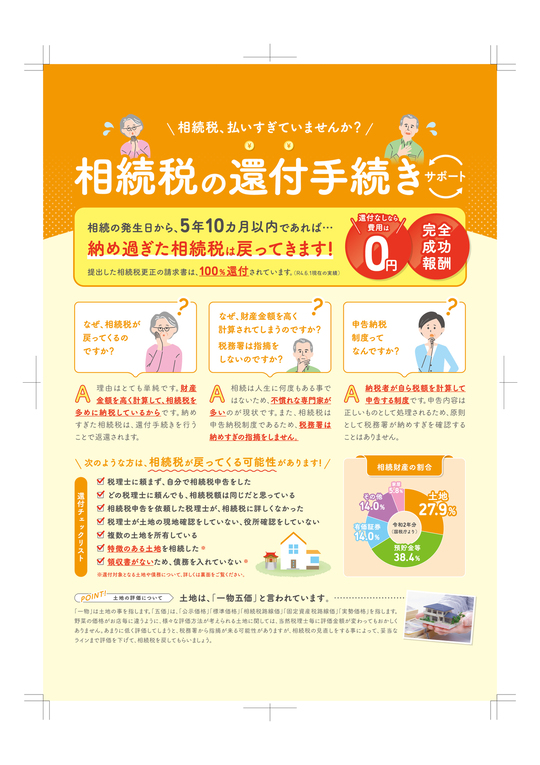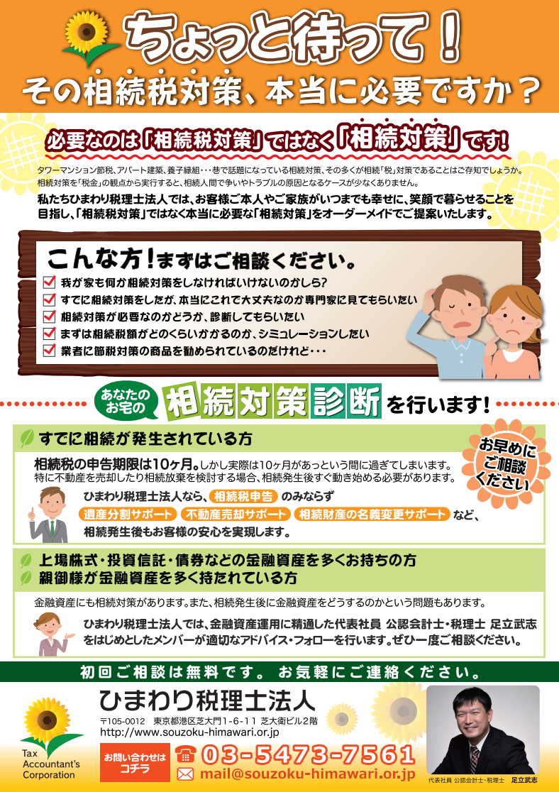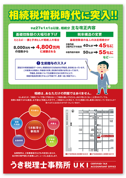 税理士事務所 相続税に関する案内チラシ作成事例チラシ作成のデザイン・印刷が安い大阪Canチラシ制作部。