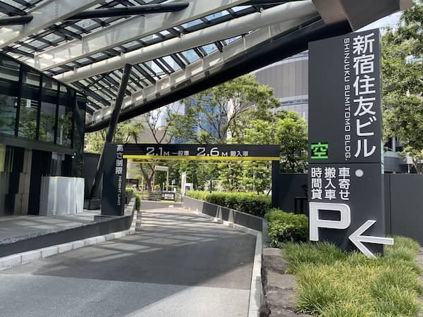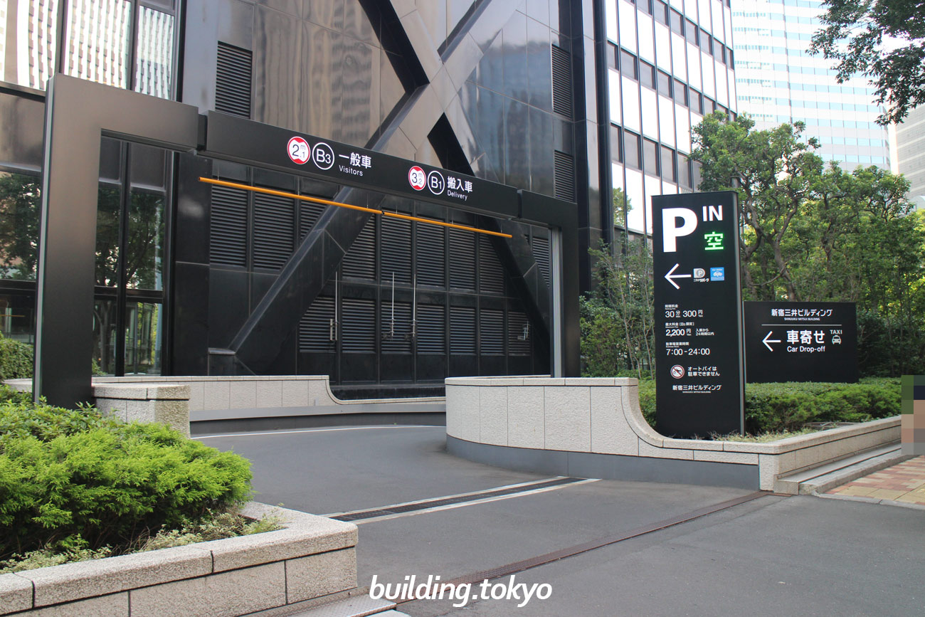 新宿三井ビル『地下』駐車場入口までTo Shinjuku Mitsui Building parking lot entrance。