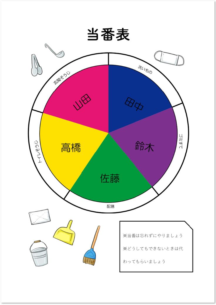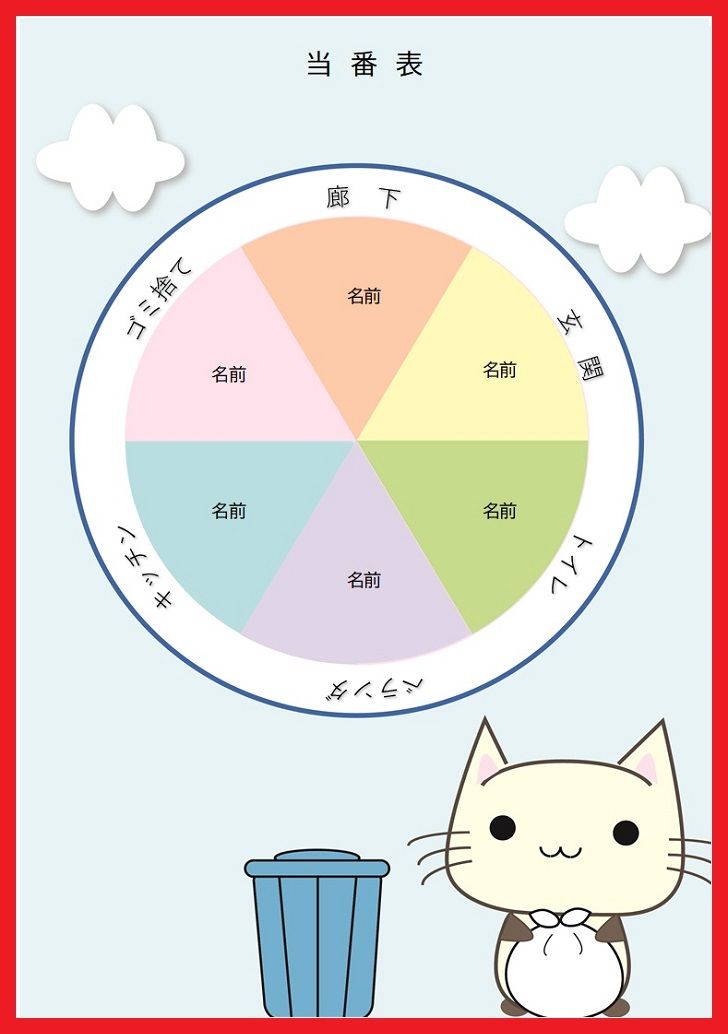ゴミ・掃除当番表Excelで作成した可愛いテンプレート学校・会社で。
