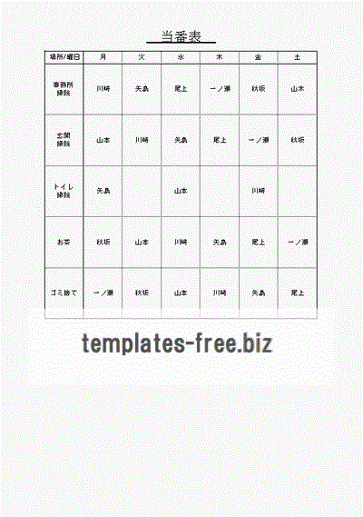 当番表テンプレート - Excelフリーソフト館 - 無料テンプレート集。