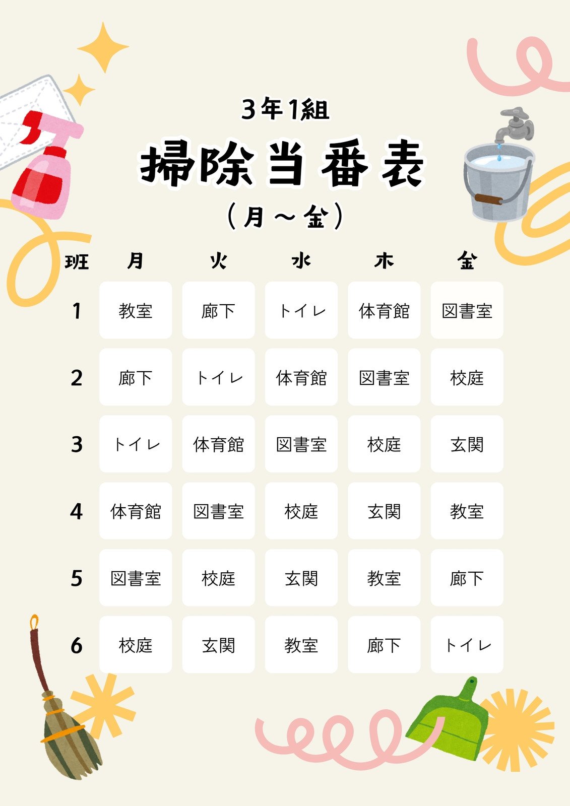 掃除当番表無料テンプレートデザイン。イラストや画像付きも豊富 - Canva キャンバ。
