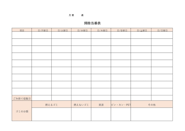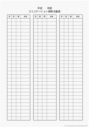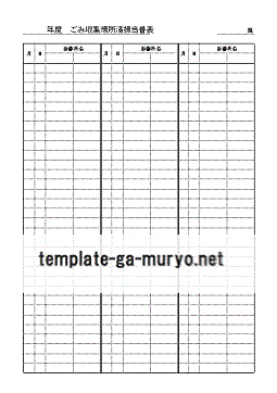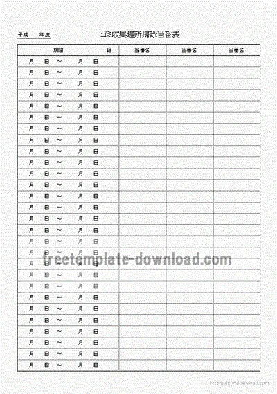 ゴミ収集場所掃除当番表 - 月・日記入と期間記入の2種類:フリーテンプレートダウンロード。