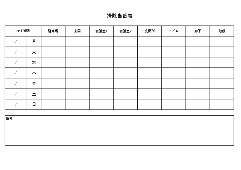 掃除当番表テンプレート無料Excel・PDFダウンロード・印刷OK かわいい・シンプル・用途別Bizroute。