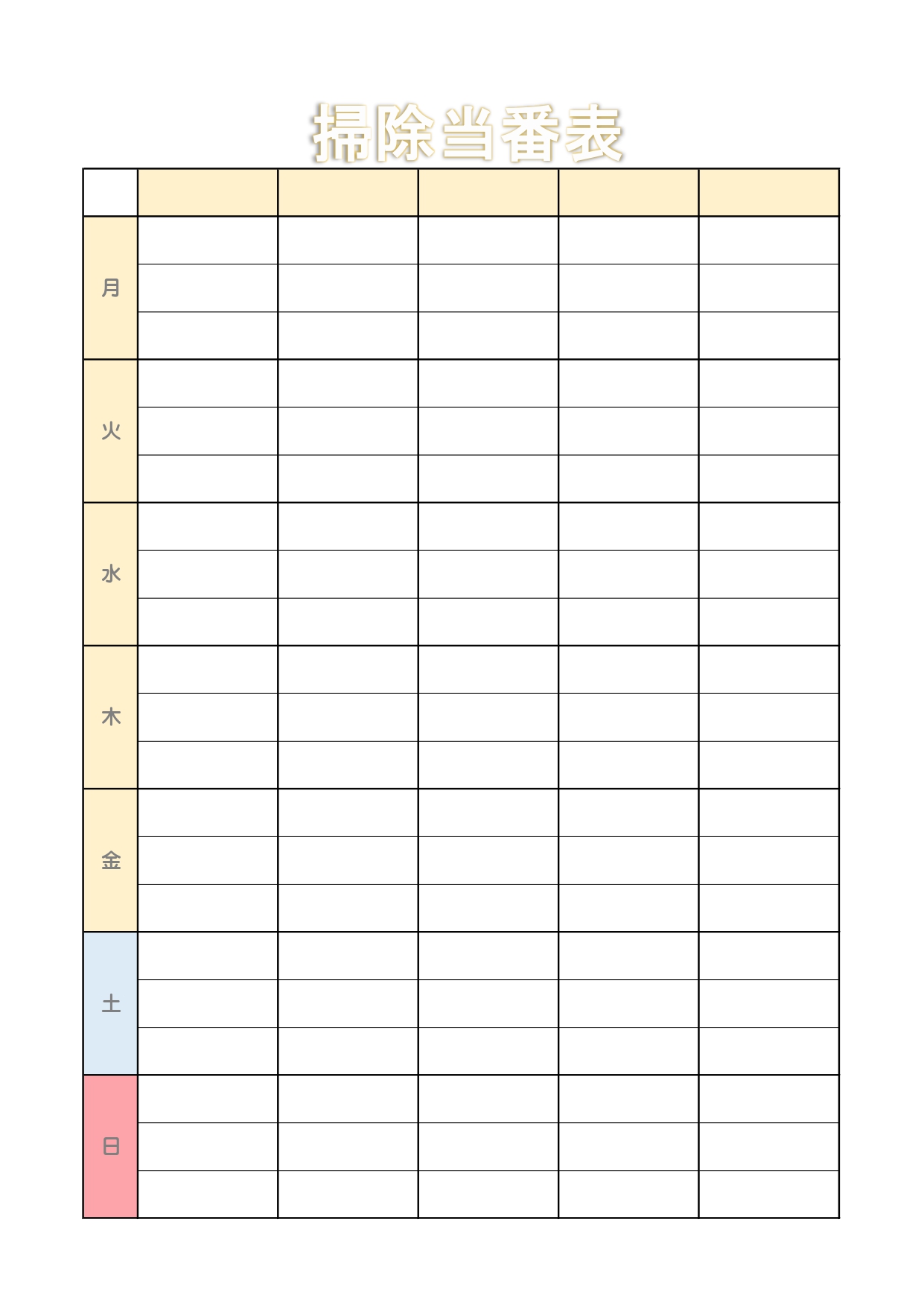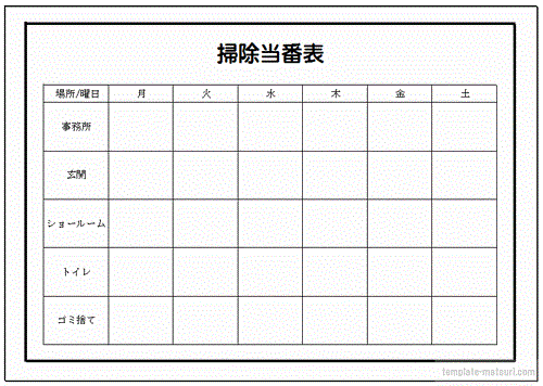 掃除当番表シンプルな表形式のテンプレートを無料ダウンロードExcel・Word基礎講座とテンプレート。