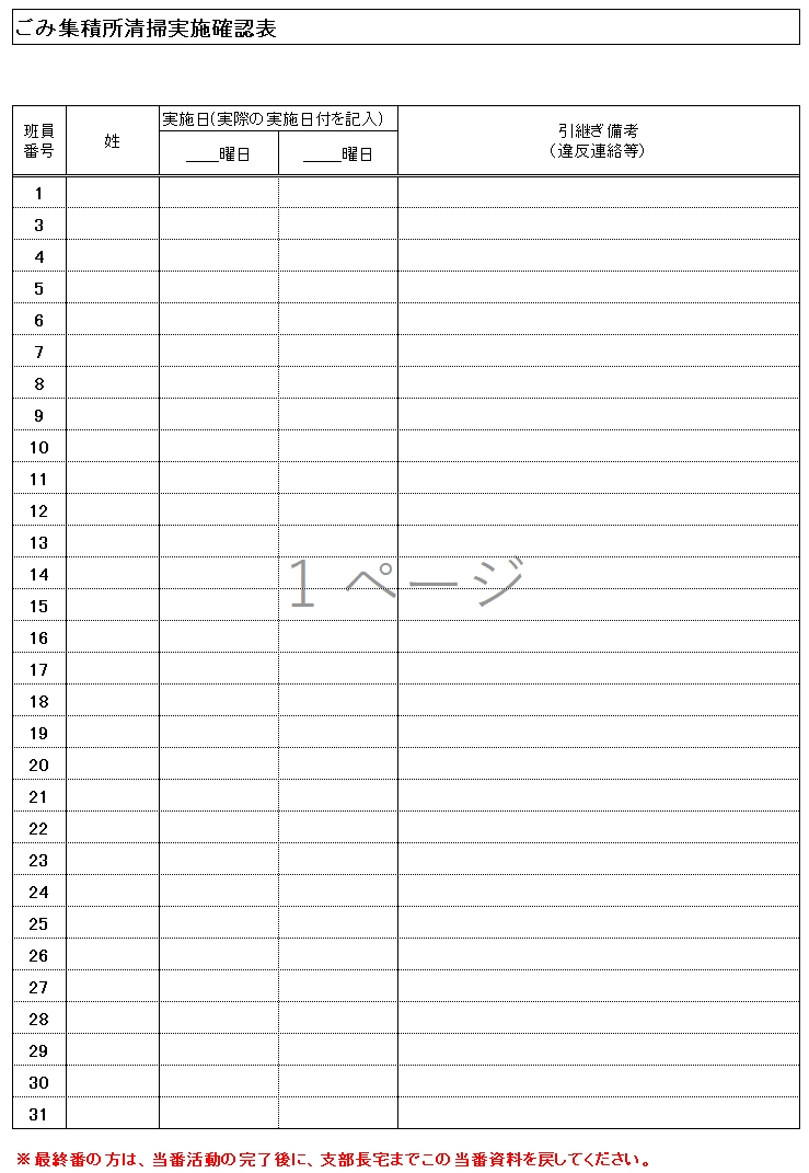 ごみ集積所清掃実施確認表 支部内回付用makorin's tweets。