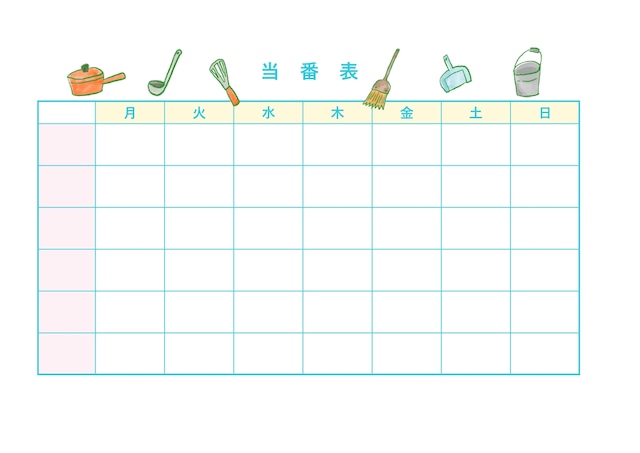 かわいい掃除当番表イラスト入りのテンプレートを無料DL。