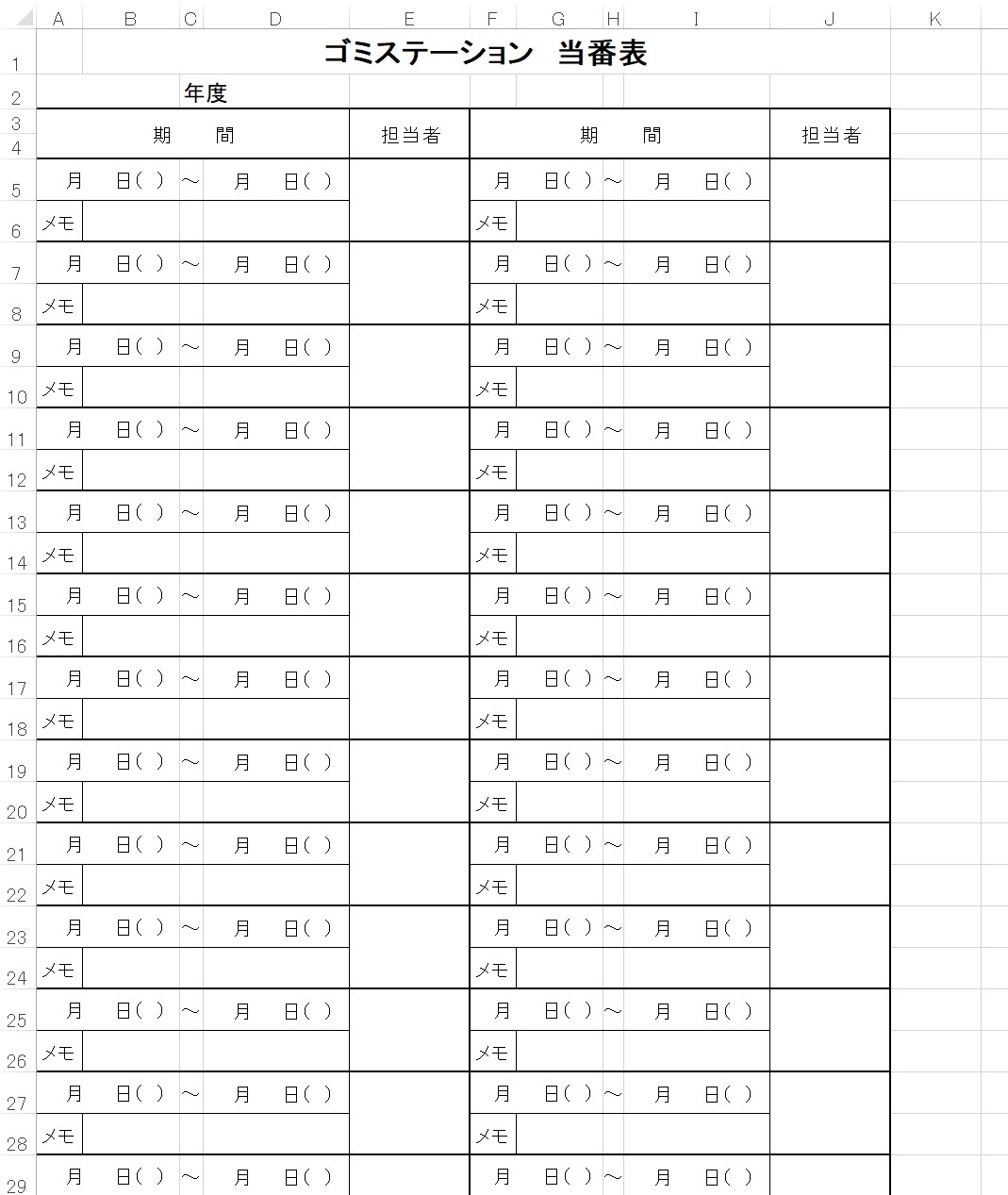 ゴミステーション掃除当番表 期間別と日付別の2種類: 無料テンプレートダウンロード。