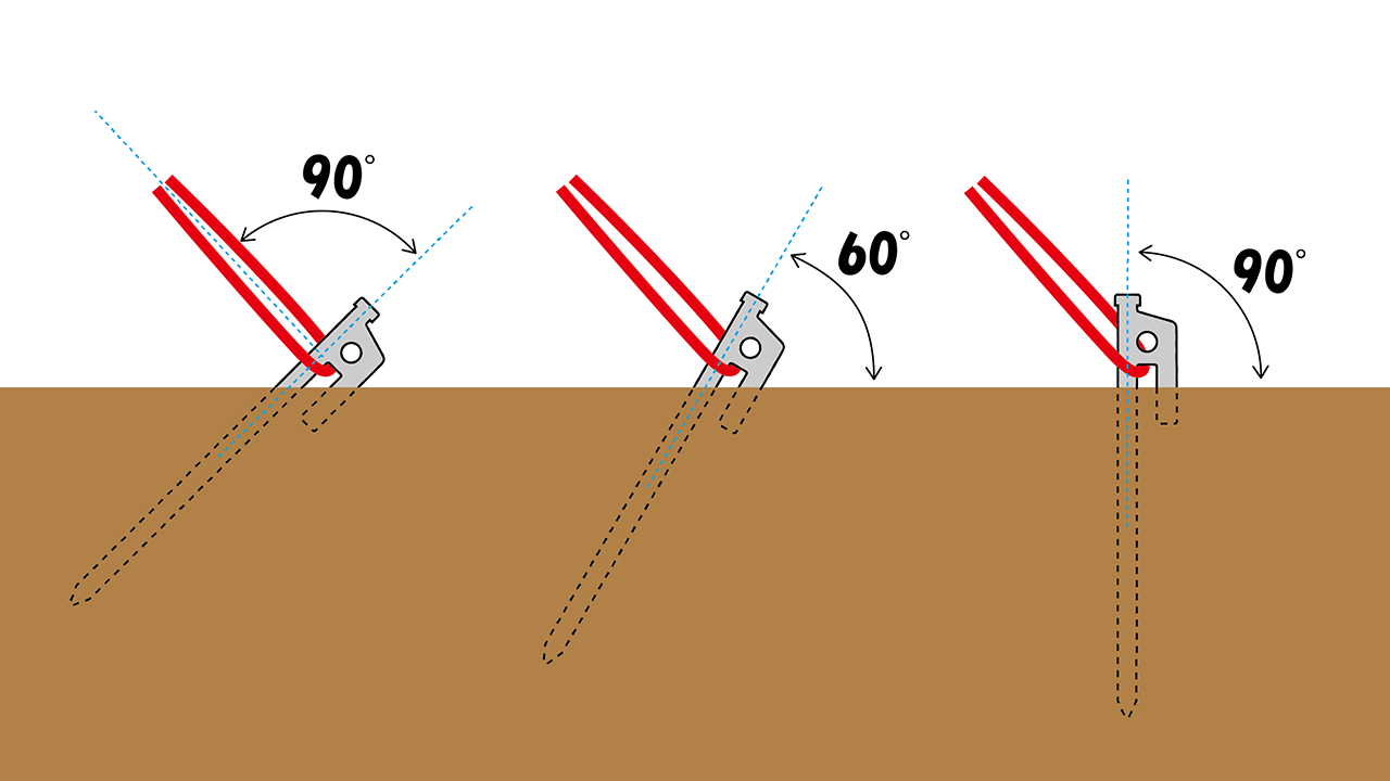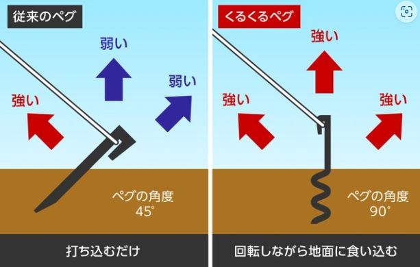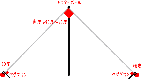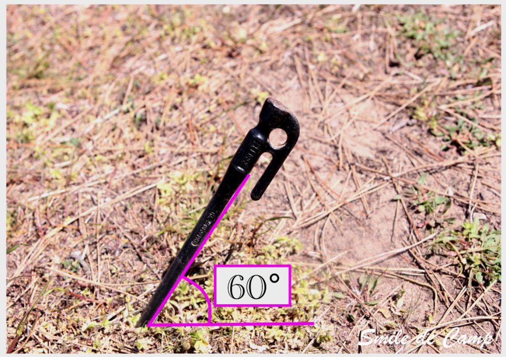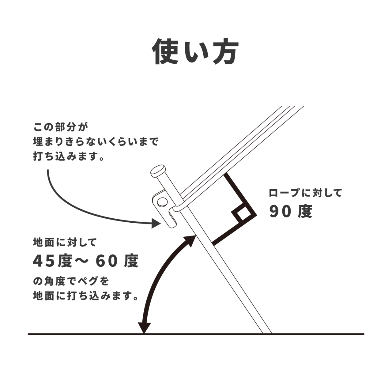 キャンプの基本 ペグを打つ角度!地面から45度から60度が理想的!タカイチライフ。