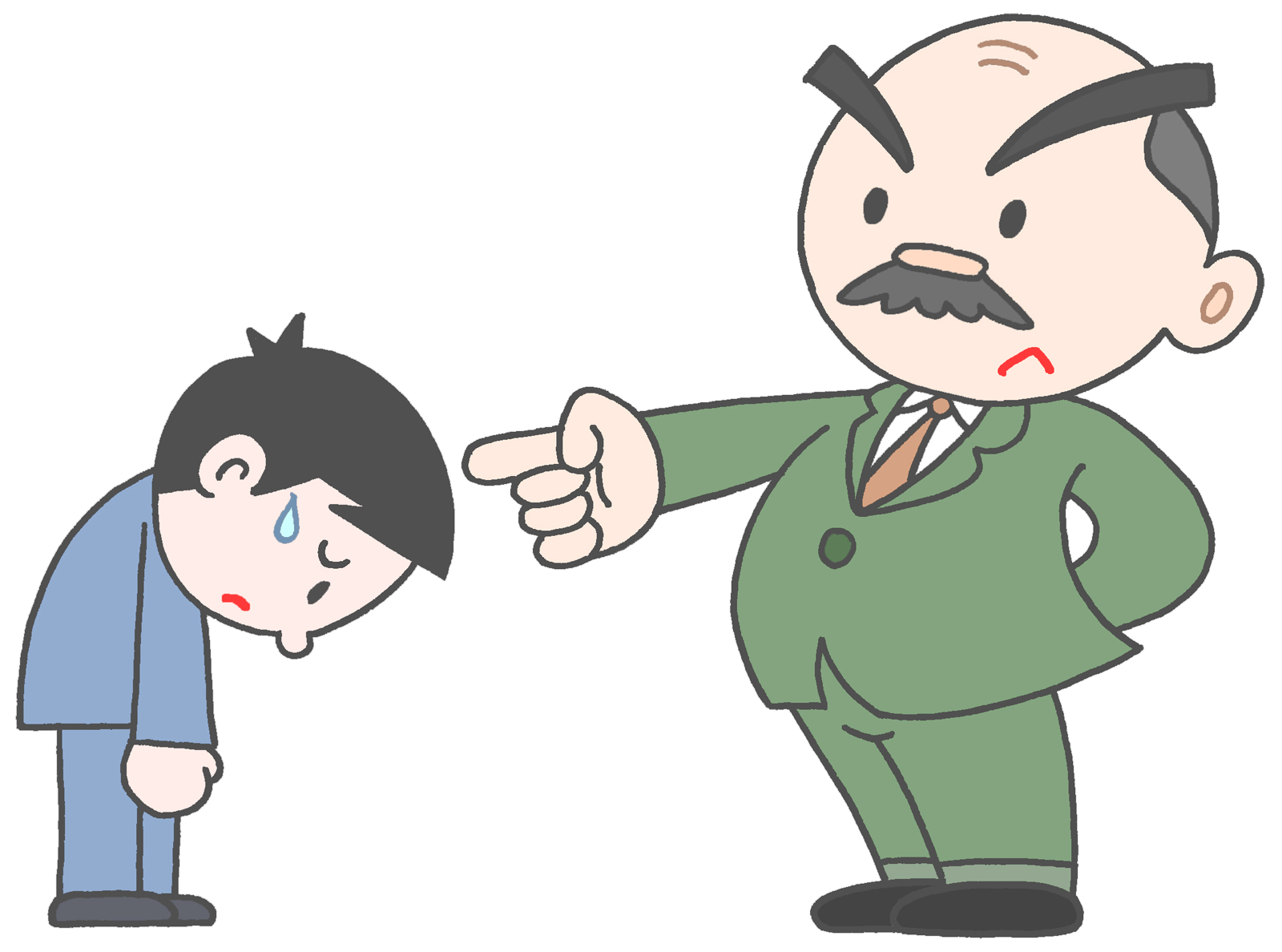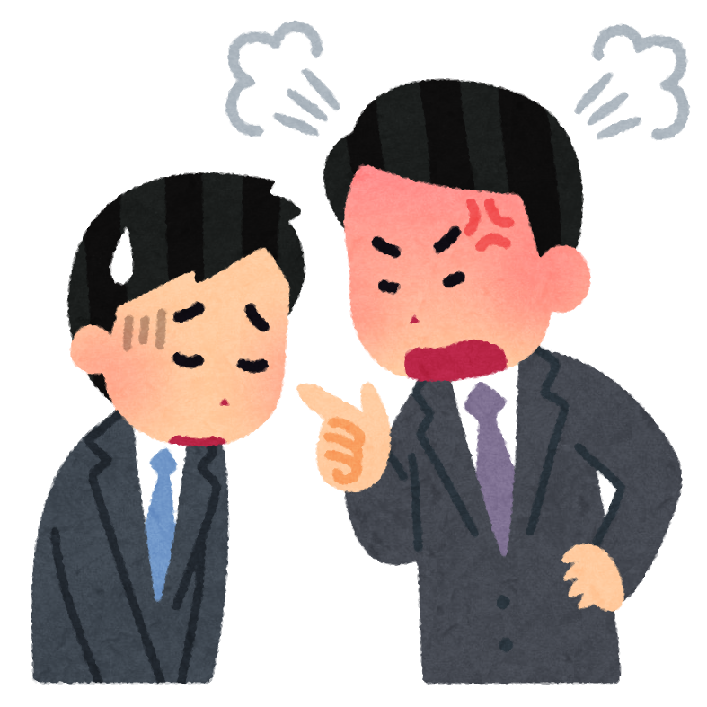 パワハラ・怒っている上司と怒られる部下 無料イラスト。