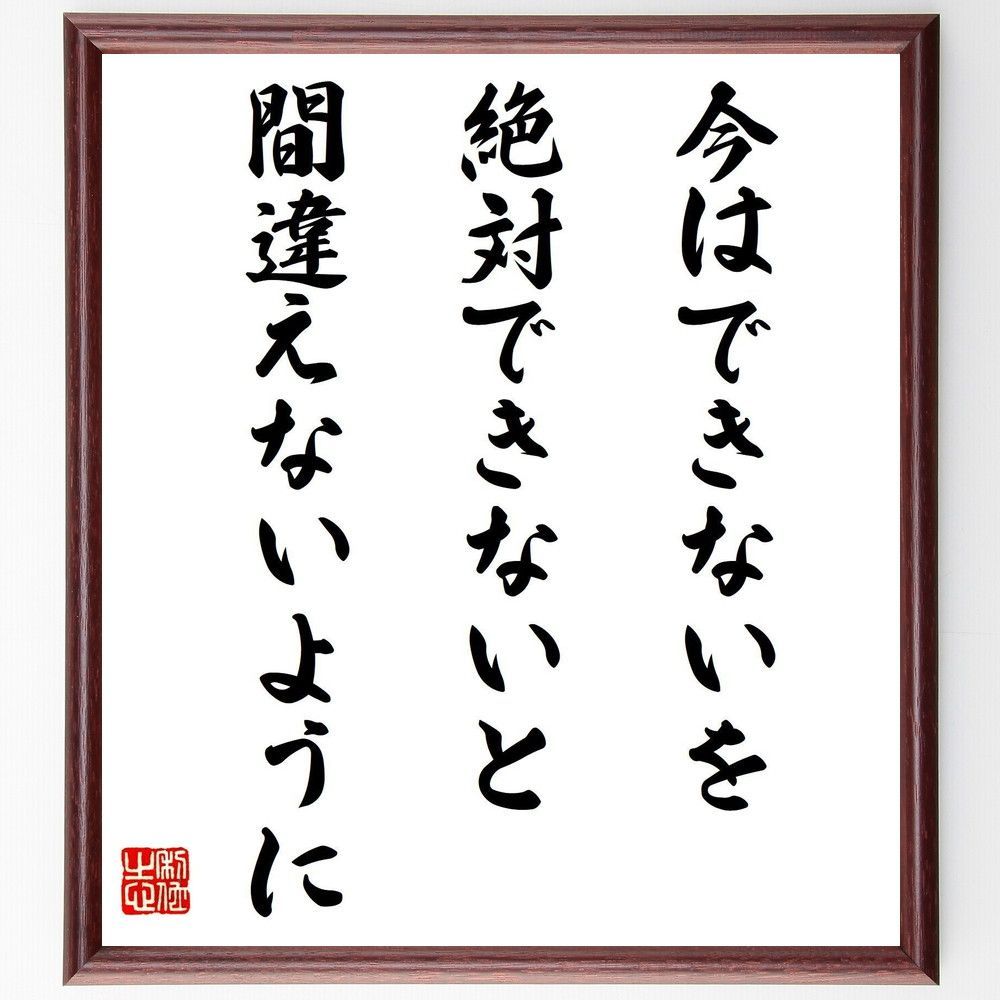 名言「今はできないを、絶対できないと、間違えないように」手書き書道色紙額。