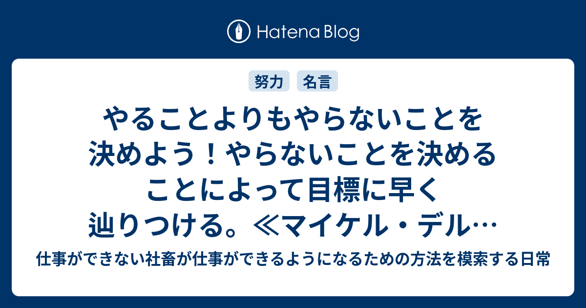 やることよりもやらないことを決めよう!やらないことを決めることによって目標に早く辿りつける。≪マイケル・デルの名言≫ -仕事ができない社畜が仕事ができるようになるための方法を模索する日常。