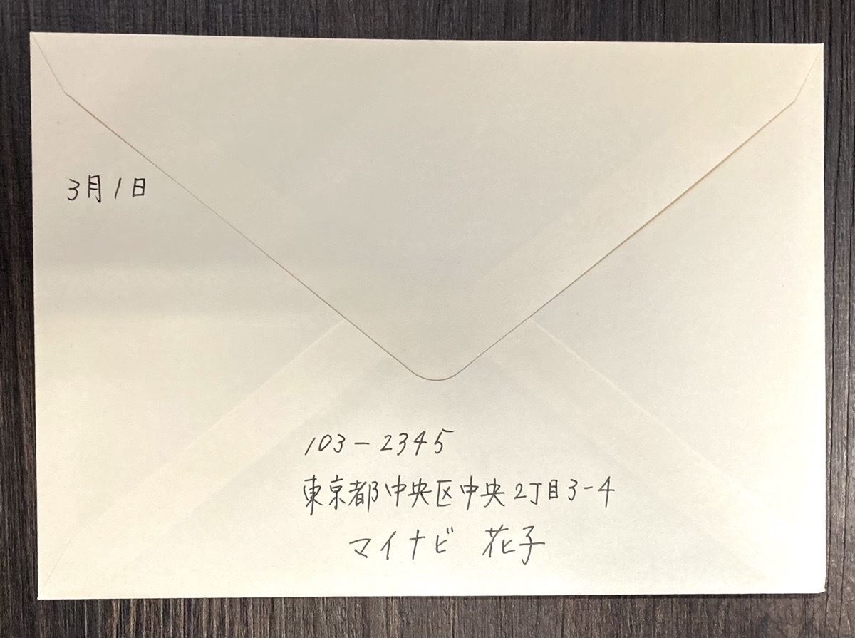 封筒の裏書きの書き方 2大人向けペン字通信講座葉雨ペン字通信レッスン。
