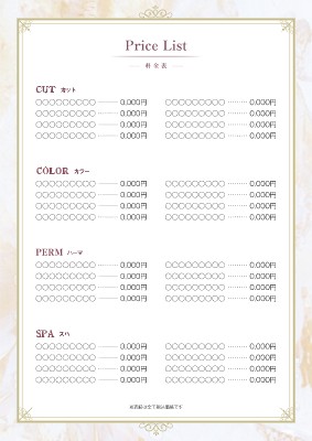 美容室・エステ・サロンにおすすめ「料金表」の無料テンプレート!シンプルなデザイン!エクセル・ワードで簡単作成!可愛いだらけ。