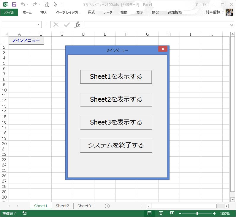 Excelで メニューを作るTips1ExcelVBA - Qiita。