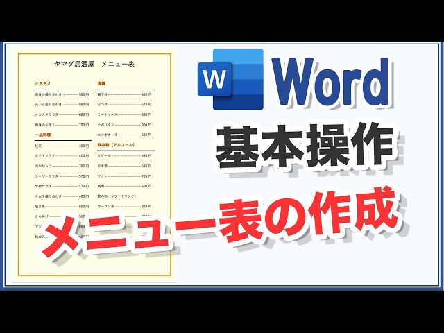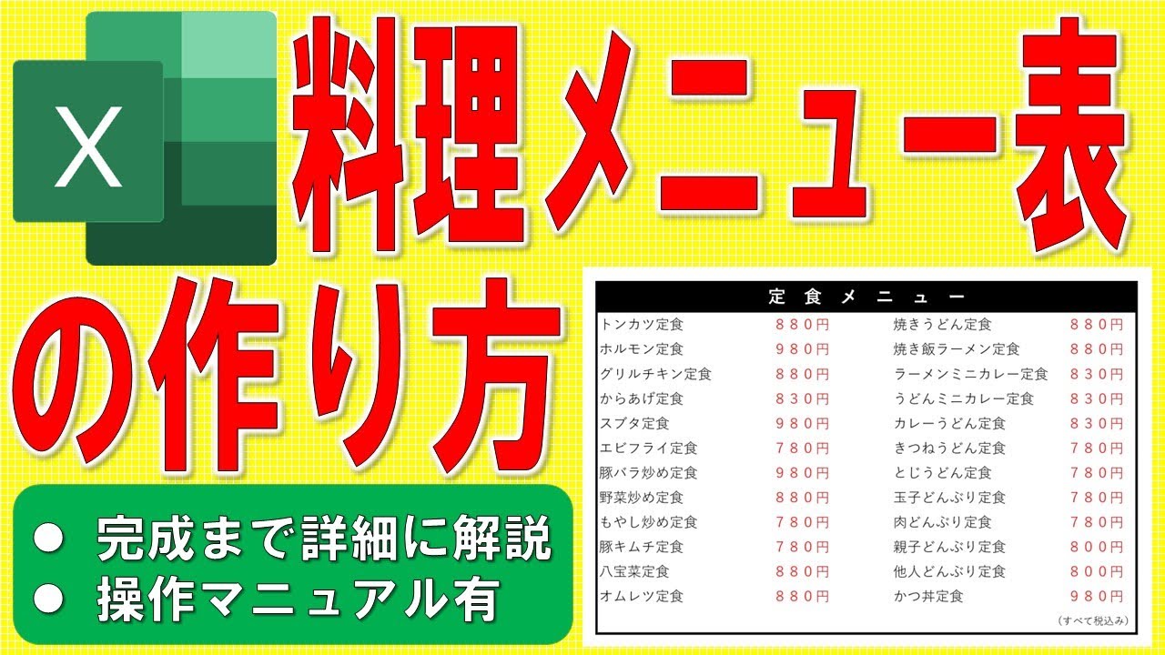 メニュー表を作成しようYouTubeパソコンスキルUP講座。