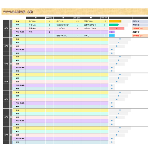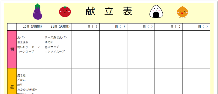 献立表 - 無料テンプレート公開中 - 楽しもう Office。
