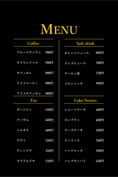 メニュー表 おしゃれ可愛いメニュー表&料金表&価格表作成。