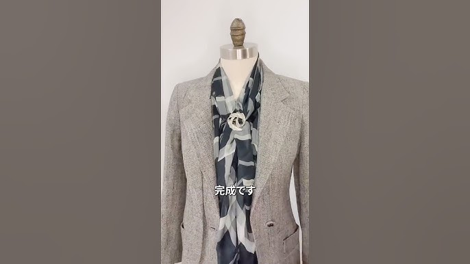 <結び留め>ストールクリップを使ったスカーフの巻き方アレンジ リライアンスRELIANCEshortsstoleclipscarfclip #スカーフクリップ スカーフ巻き方。