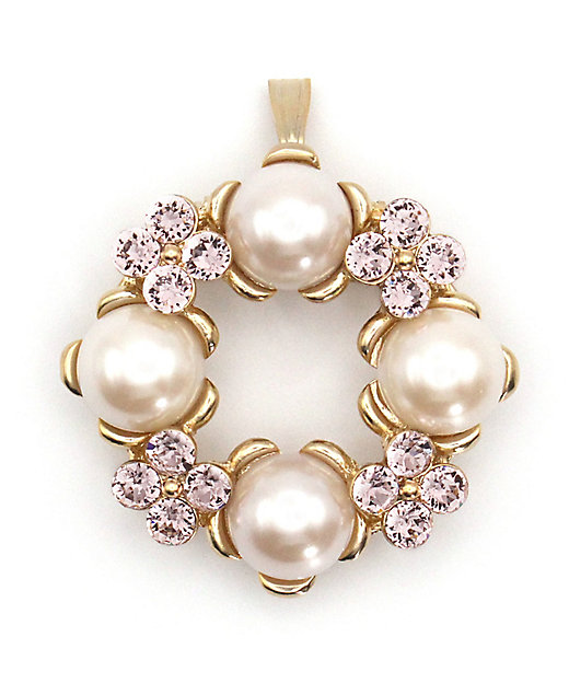 スカーフクリップ ストールクリップ 花 シェル リライアンス relianceパールネックレスとスカーフの異素材をミックスして、レディライクなリボンアレンジ。, 橋渡し役のパールモチーフのクリップが洗練度をアップしてくれます。,スカーフサイズ65×65cm ,4つ花パール。