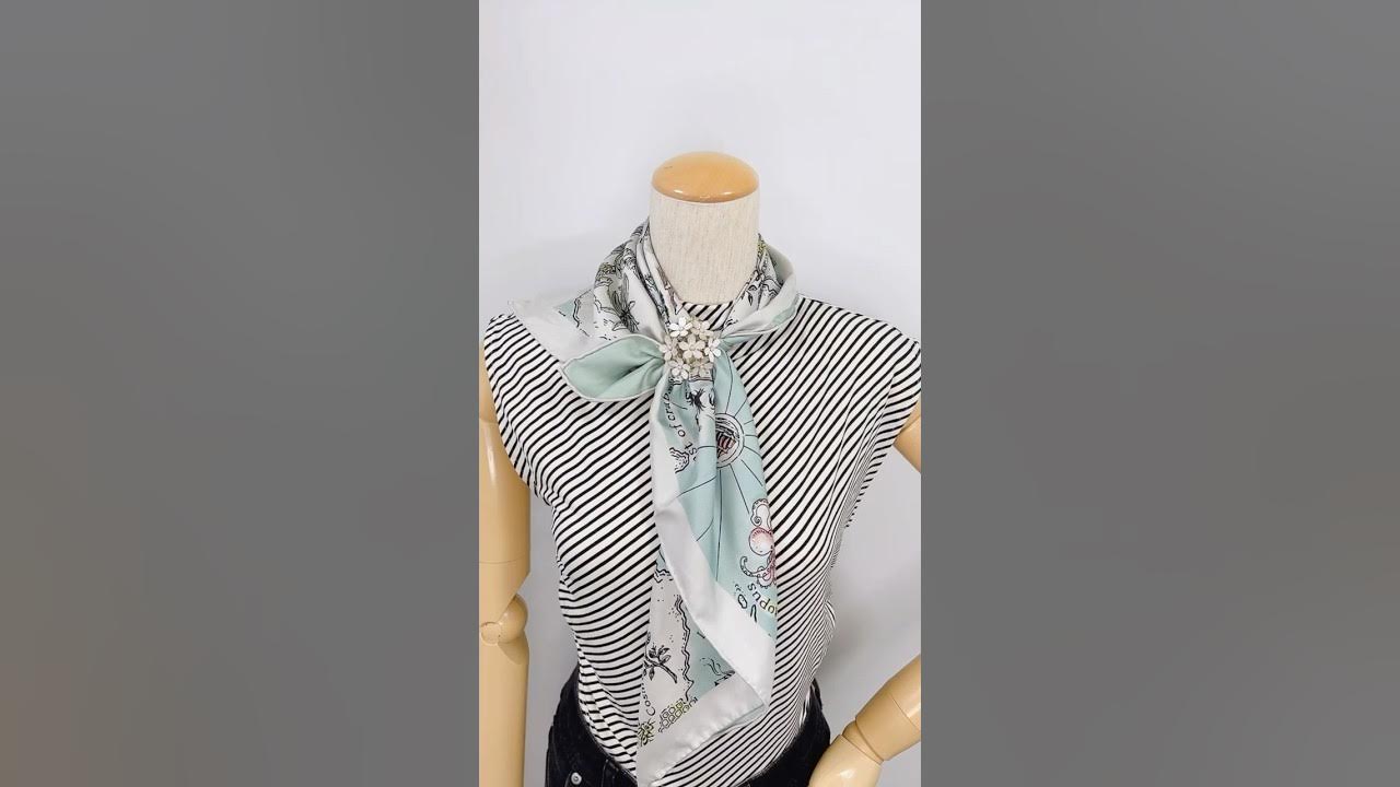 <ブラウス風>ストールクリップを使ったスカーフの巻き方アレンジ リライアンスRELIANCEshortsstoleclipscarfclip #スカーフクリップ スカーフ巻き方。