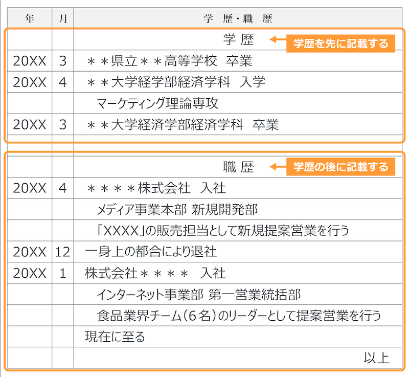 見本付き 履歴書の学歴欄の書き方徹底ガイド天職ヒント。
