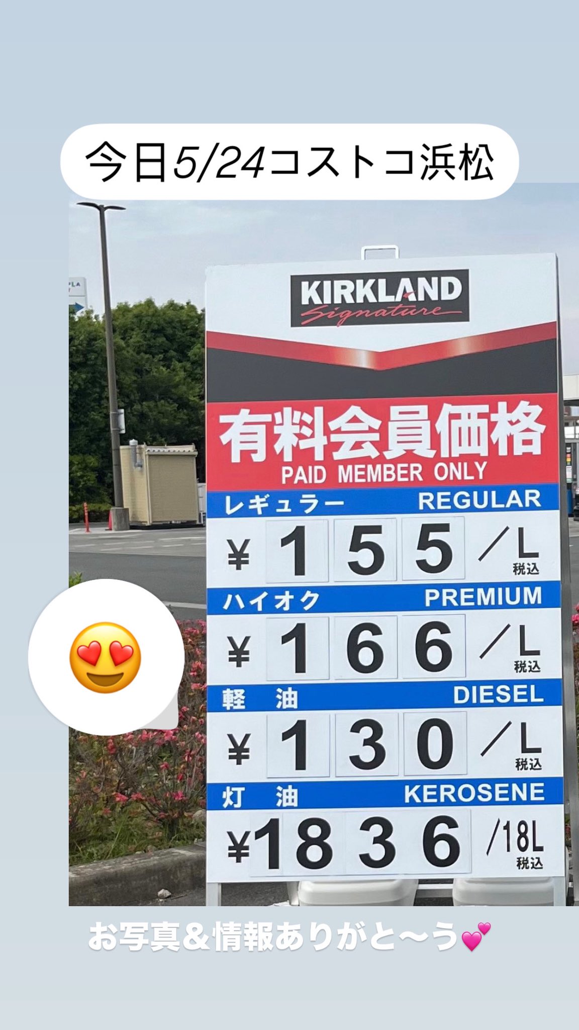 コストコ浜松 浜美 on X: " ガソリン 価格 \コストコ浜松https:t.co Fjc2H0vWyN"X。