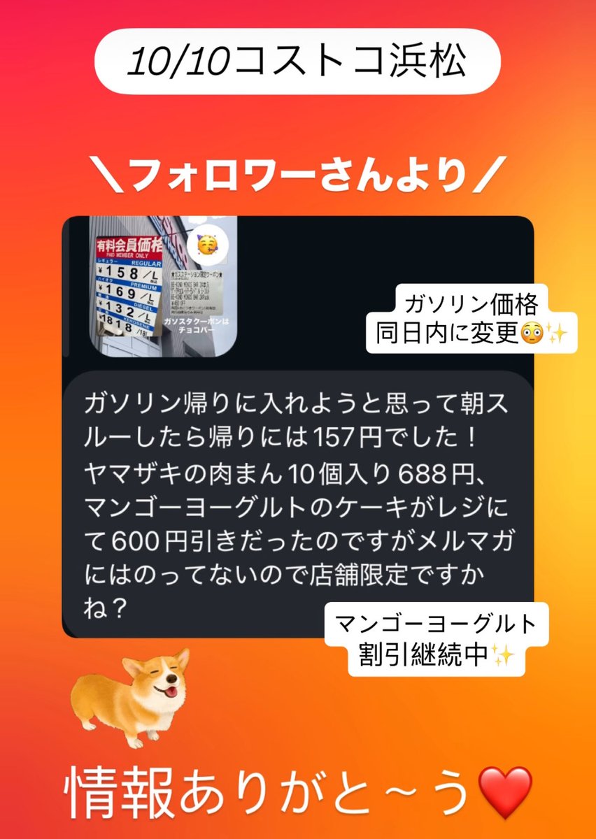 コストコ浜松 浜美 on X: " お得情報 本日のコストコ 情報① ガソリン価格&クーポン in浜松倉庫店https:t.co j9erTrmDT7"X。