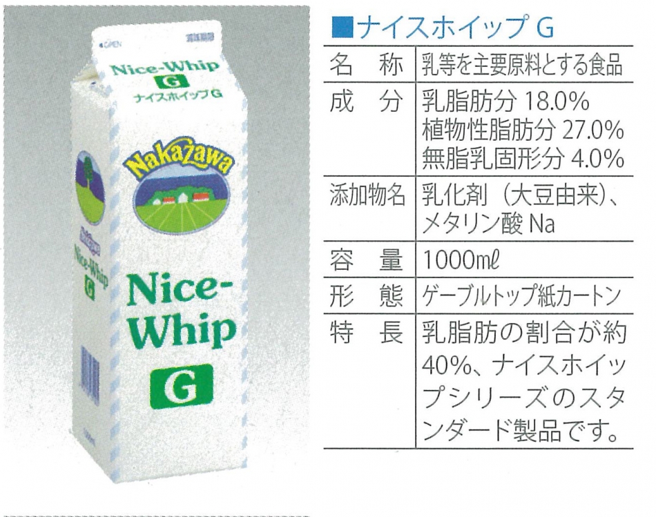 中沢 ナイスホイップE1000mlバター・乳製品・油脂・卵,生クリーム・クリーム類,ホイップクリーム通販 富澤商店。
