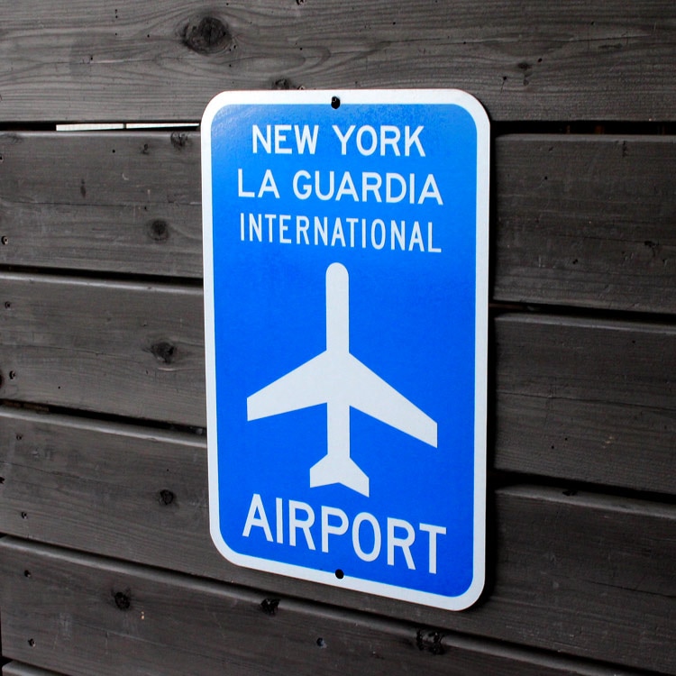 エアポートサイン ニューヨーク ラガーディア国際空港 縦45.5×横30.5cm 道路標識 看板 アメリカ製 トラフィックサイン インテリアガレージング 店舗装飾 アメリカ雑貨トラフィックサインアメリカン雑貨COLOUR。