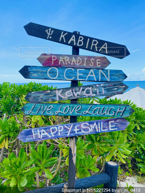 ビーチにある海外風の標識、看板の写真・画像素材-Snapmart スナップマート。