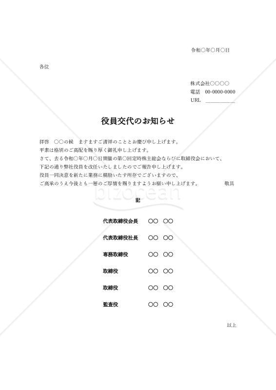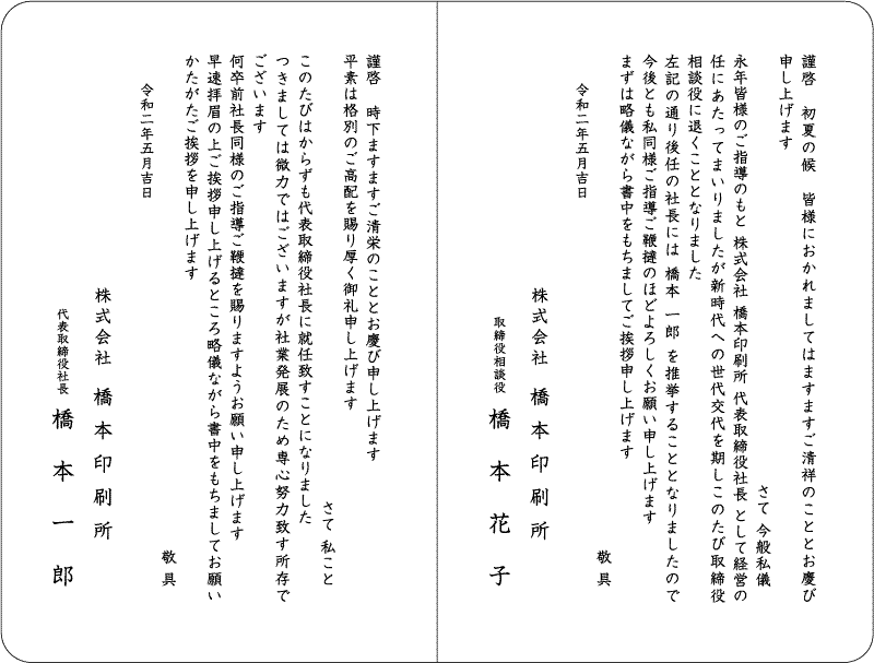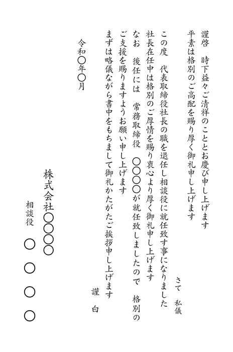挨拶状 社長交代・就任・退任 例文と書き方マナー印刷プリントメイト。