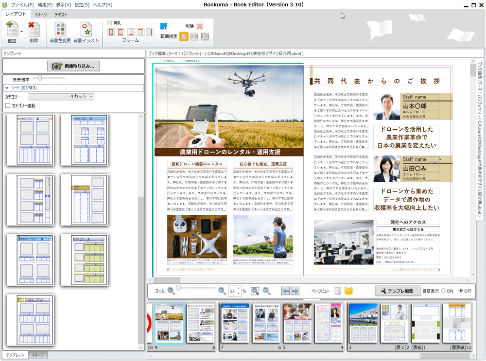代表挨拶テンプレートのデザイン案会社案内冊子向き。