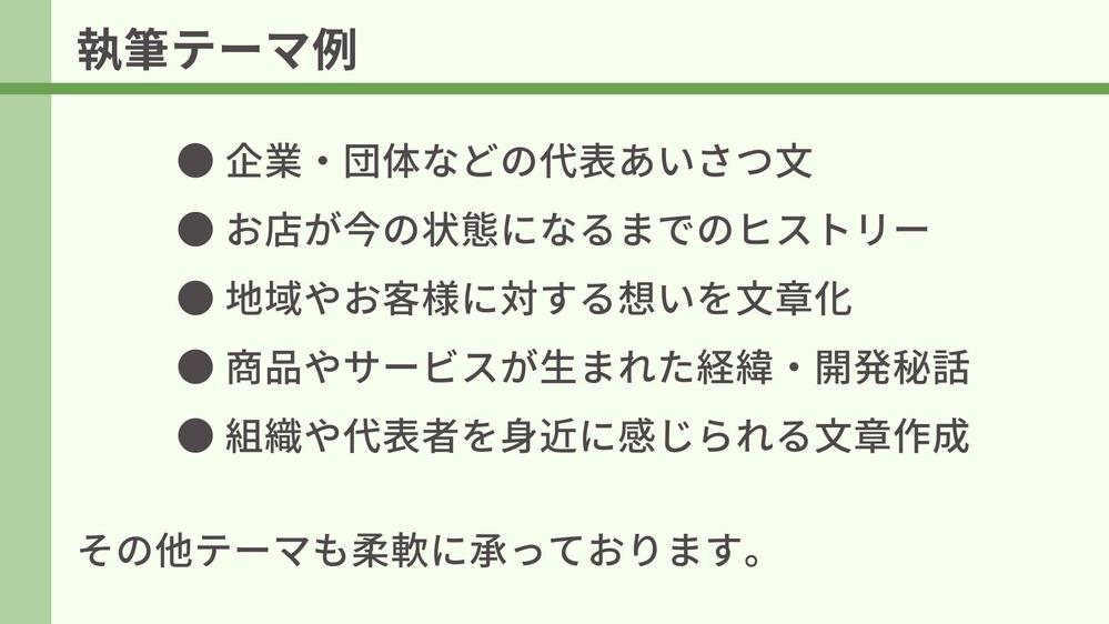 代表挨拶文、組織や店舗紹介 企業やお店の想いが顧客に伝わる!紹介記事を執筆しますWebサイトコンテンツ作成の外注・代行ランサーズ。