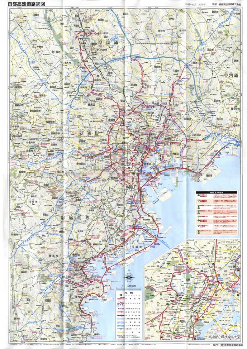 マップルの首都圏高速道路案内図 裏面、首都高速案内 を印刷販売マップル地図プリント。