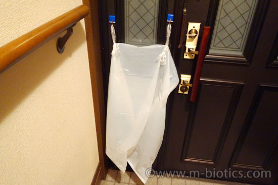 郵便物が玄関のポスト口から床に落ちて汚れる~ドア内側の郵便受けをポリ袋と強力マグネットフックで自作してみた DIY健康探究ブログ。