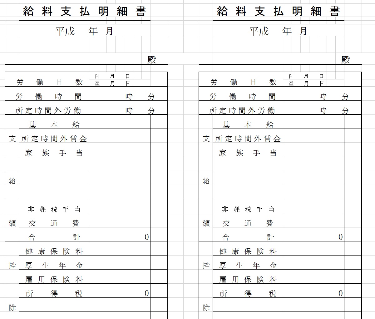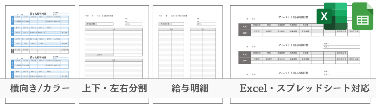 支給明細書Excel作成の2種類のフォーマットの雛形を無料でダウンロードできます。