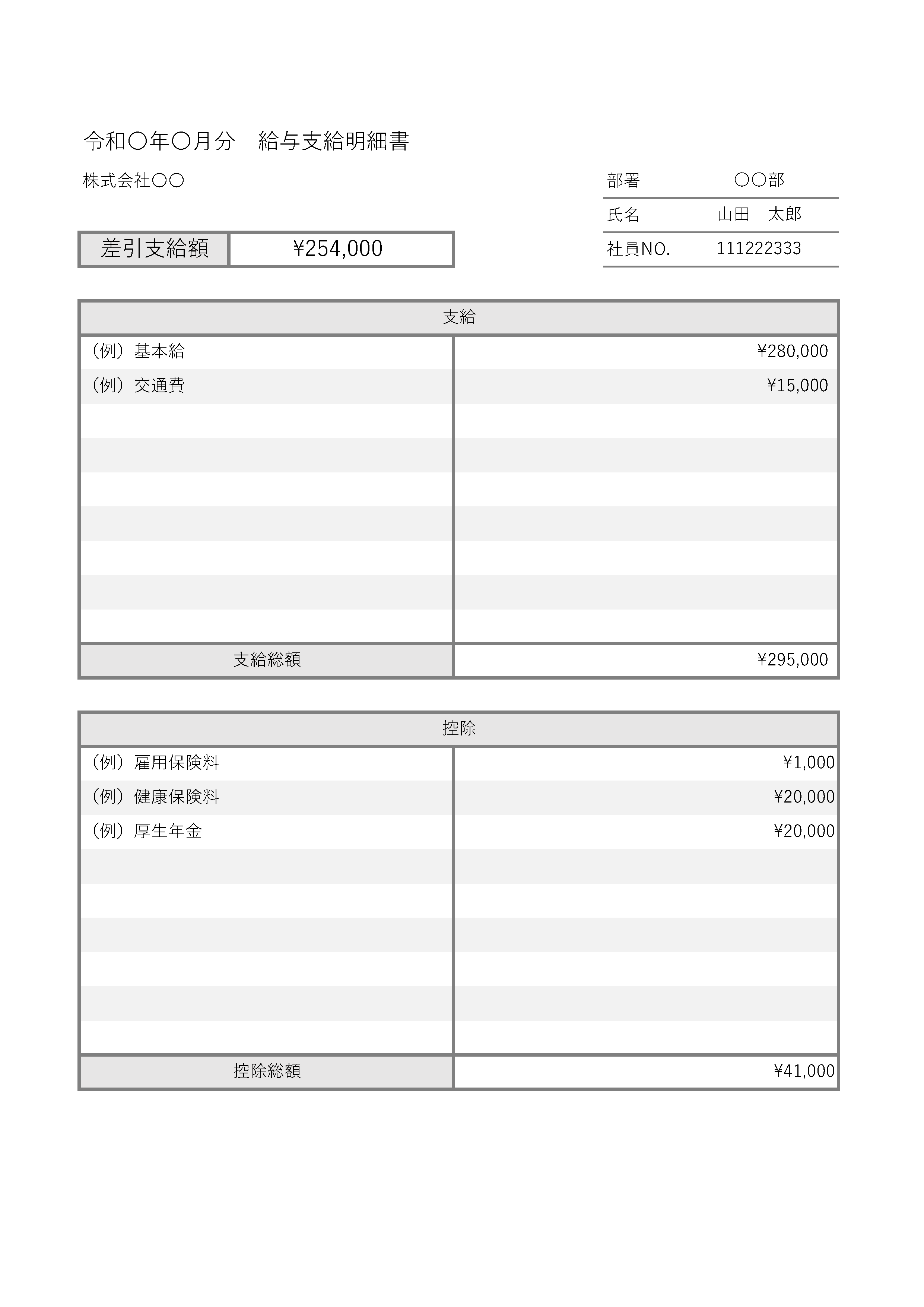 エクセルの給料支払明細書 テンプレート - エクセルフリー 無料ダウンロード。