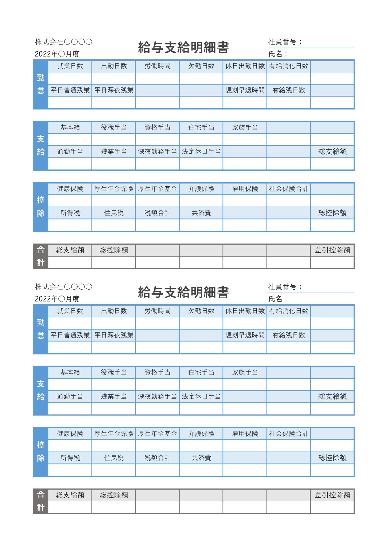 すぐに使える給与明細書テンプレート Excel・PDF・スプレッドシート 無料・登録不要ビズ研。