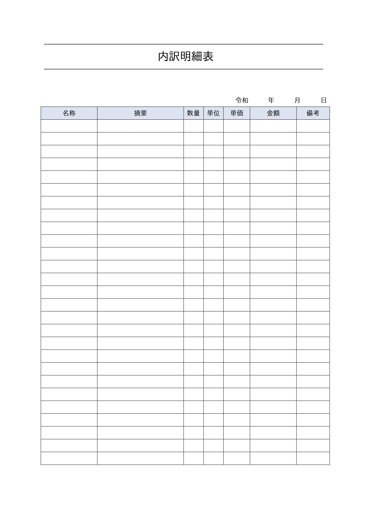 シンプルな内訳明細書のテンプレート◎請求書や納品書の添付資料におすすめ! シンプルですっきり&見やすい「内訳明細書」のテ。