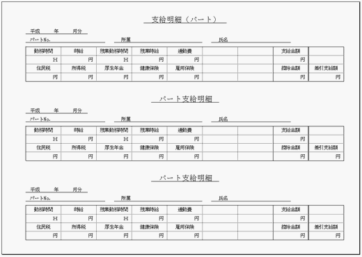 給与支払明細書3面モノクロ テンプレート詳細 その他伝票・給与明細書 - ビジネス文書のポータルサイト B-Form.biz ビーフォームビズ。
