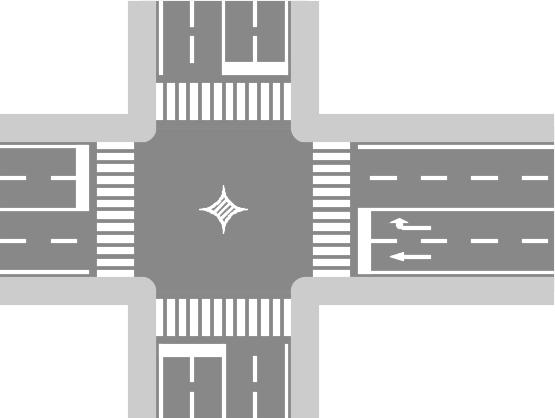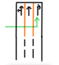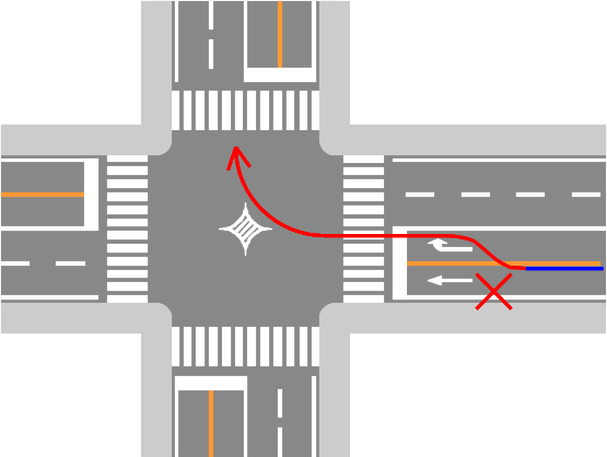 交差点手前の車両通行帯通行区分違反。