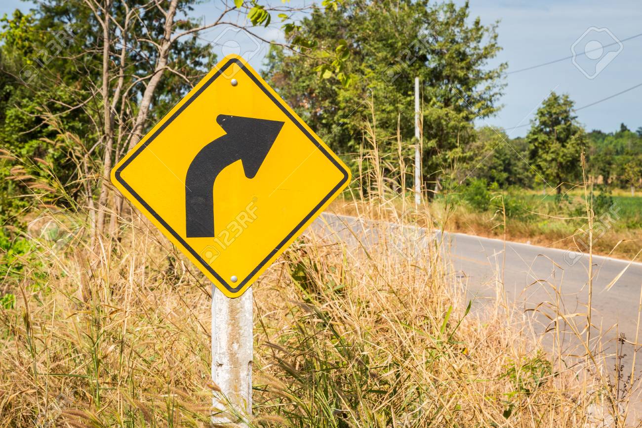 黄色の標識の警告を右折します。の写真素材・画像素材 Image 14000997。