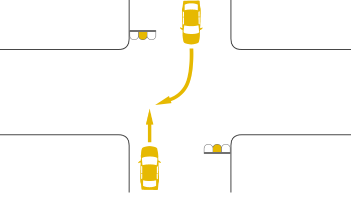青または黄信号で交差点を直進する車と対向右折車の事故の過失割合 - 交通事故お役立ち手帳。
