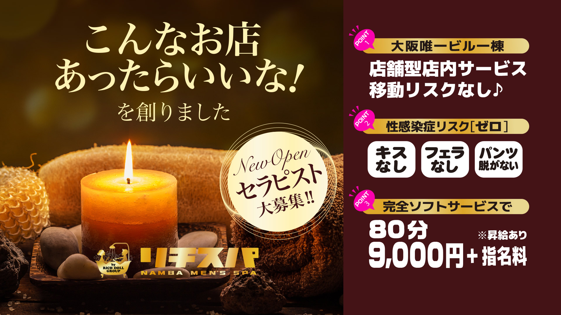 大阪 難波 高収入風俗エステ求人リチスパ。