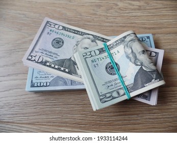 木のテーブルの上に本物のドル札束。 何千ドルもの現金。写真素材1933114244Shutterstock。