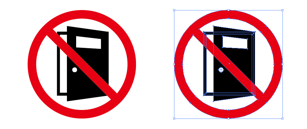 ドア・扉の開放厳禁のシルエット無料のAi・PNG白黒シルエットイラスト。