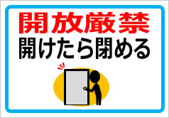 開放厳禁開けたら閉めるの貼紙フリー貼り紙のペラガミ.com。