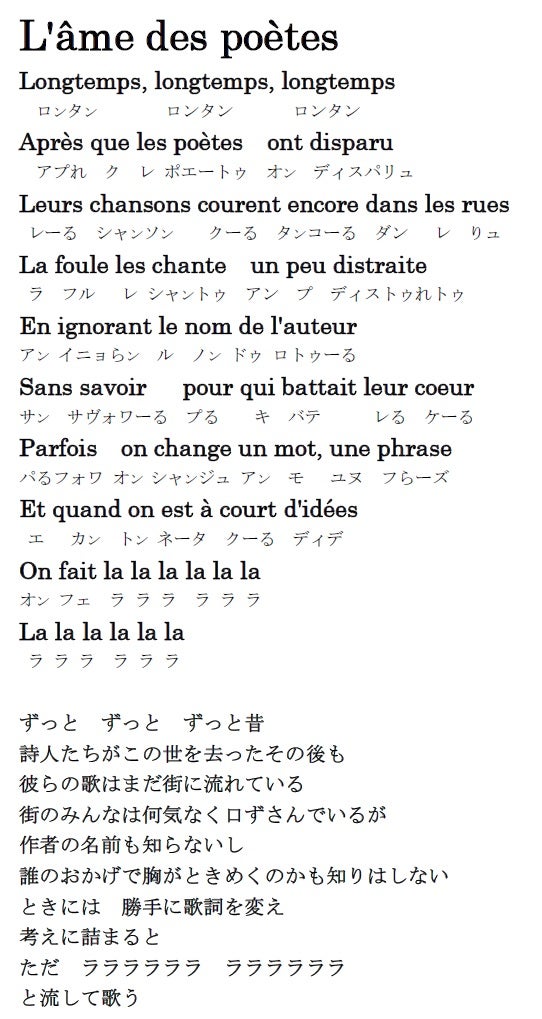 詩人の魂 L'âme des poètes 歌詞フリガナ、楽譜付 * トレネミスター・ビーンのお気楽ブログ。