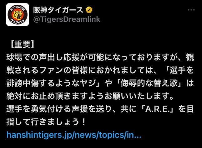 阪神タイガースに続き 中日ドラゴンズも「チーム、個人を傷つけるような発言」「応援歌にあわせた侮辱的な替え歌の合唱」等について注意喚起ガジェット通信 GetNews。